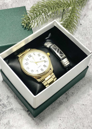 Подарочный набор для мужчины часы и браслет + коробка #23245254