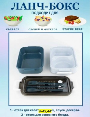 Цена штучно: 350руб Ланчбокс, пластик Для мужчин и для женщин Ланч-бокс - это удобный контейнер для хранения и переноски еды, который идеально подходит для школы, работы или дороги. Он оснащен отделениями и разделителями, что позволяет разделить различные блюда и гарантирует герметичное хранение.