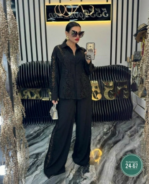 Эффектный изумрудный и чорный цвет + аккуратные кружевные вставки — смотрится дорого и женственно. Свободный крой брюк вытягивает силуэт, верх красиво сидит и не обтягивает. ▫️ Размеры: 52-54-56-58-60-62
